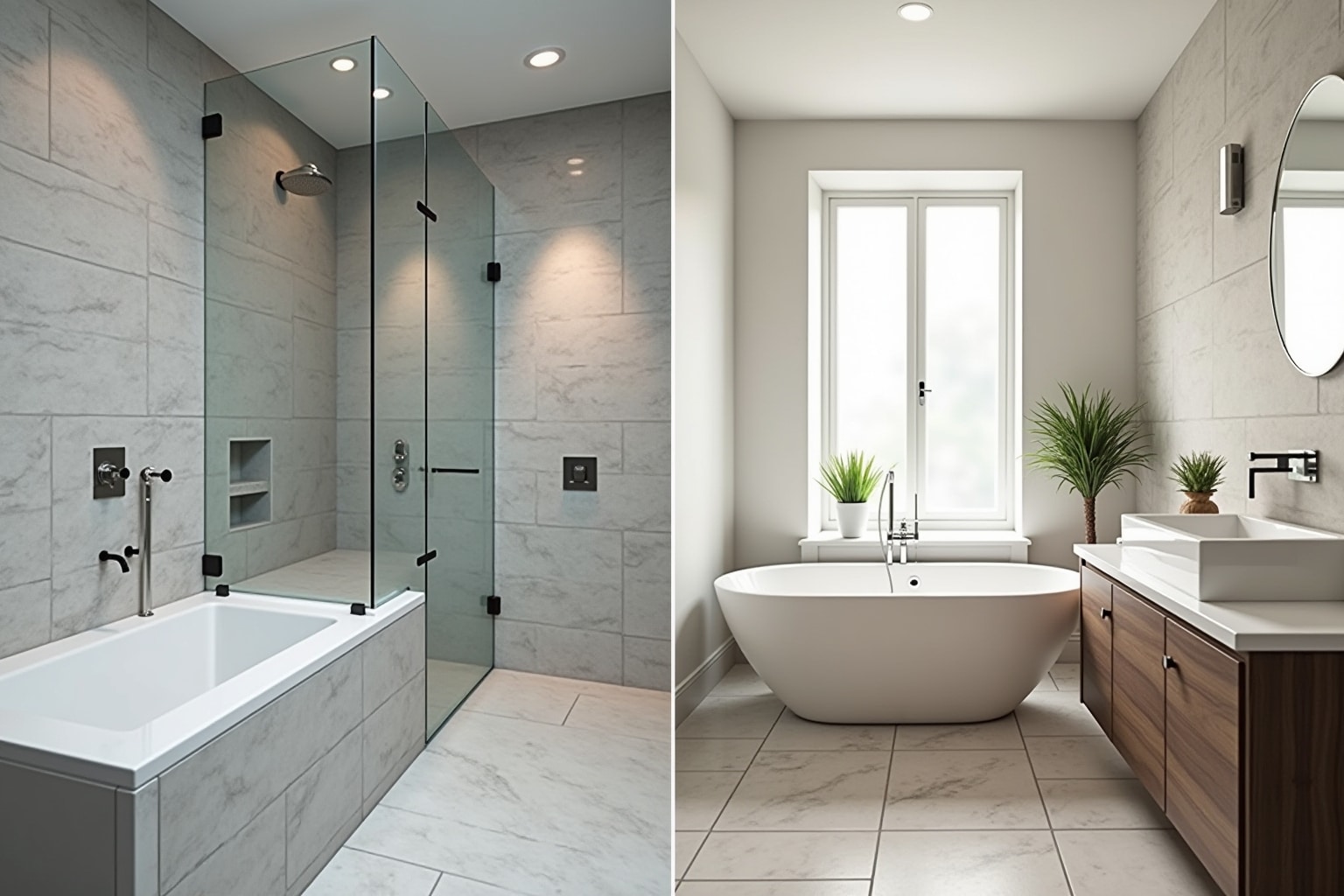 - Großformate: Großformatige Fliesen lassen Bäder größer und moderner wirken, da weniger Fugen sichtbar sind.