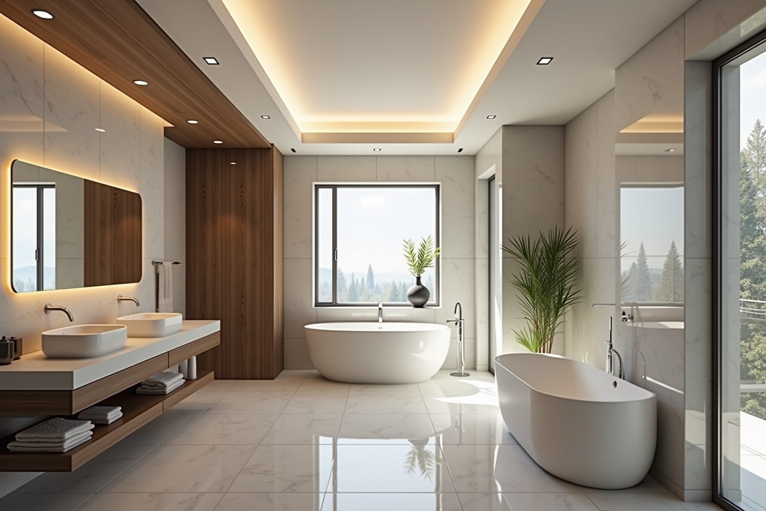 | Spiegeldecke | Raumvergrößerung, Luxus | Kleine oder dunkle Bäder | Hoch | Hoch |