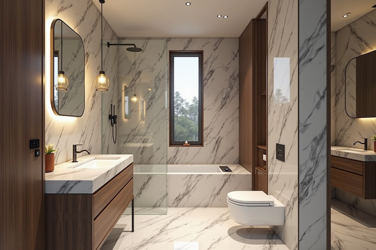 | Materialwahl & Design | Ästhetik, Haltbarkeit und Pflege | Feuchtigkeitsresistente Fliesen/Böden, stilvolle Armaturen (Chrom, Schwarz, Roségold), passende Accessoires, nachhaltige Materialien. |