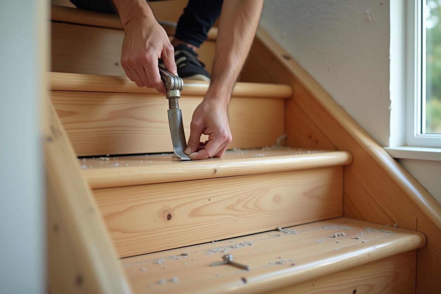 - Reinigung: Reinige die Treppe gründlich mit einem Staubsauger und einem feuchten Tuch. Entferne Staub, Schmutz und eventuelle Klebereste.