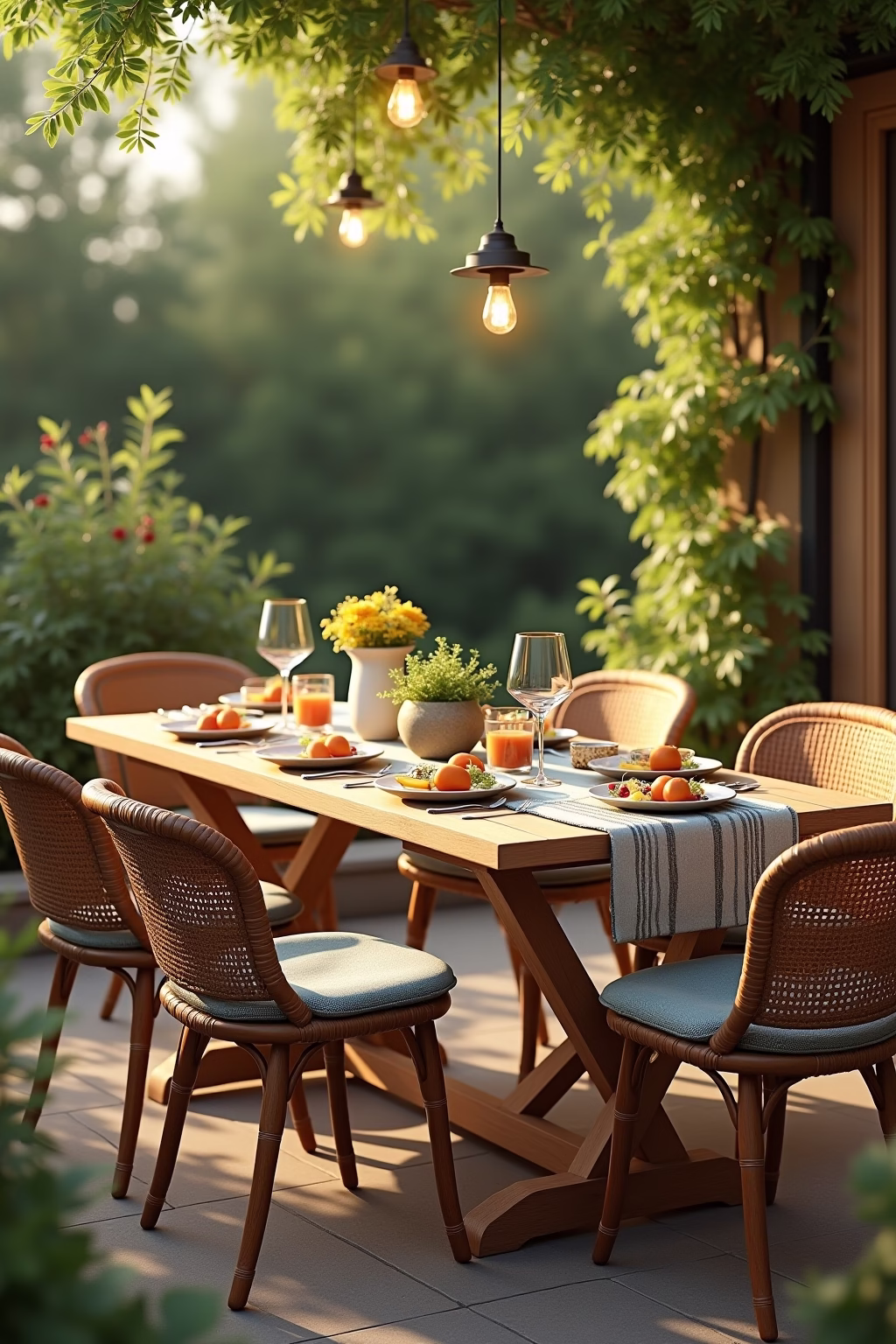 Harmonisches Gesamtbild: Stimmen Sie Ihre Tischdekoration auf den Stil Ihrer Gartenmöbel und die umgebende Bepflanzung ab.