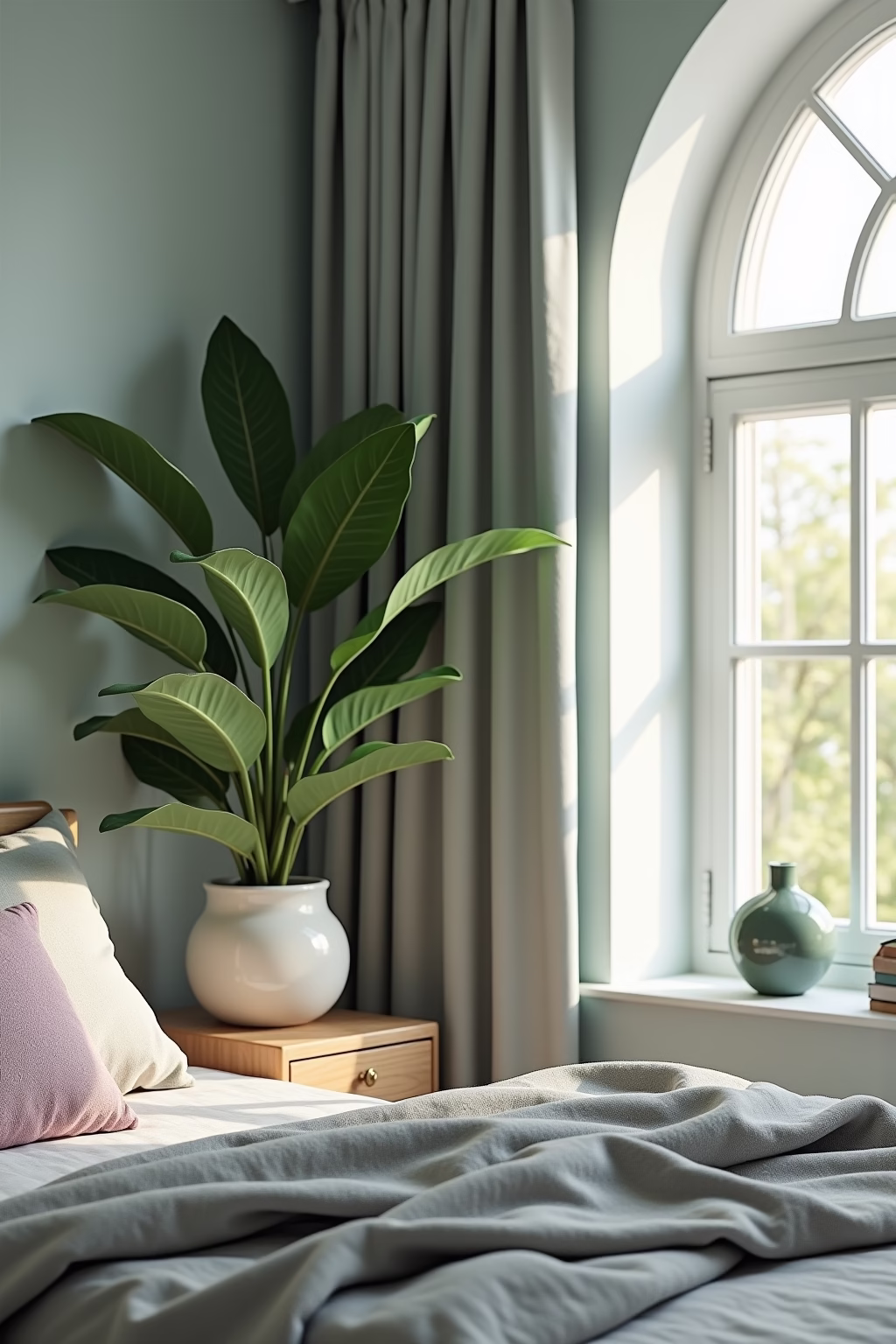 Psychologische Wirkung: Die Farbe vermittelt Ruhe, Ausgeglichenheit und eine Verbindung zur Natur – perfekte Eigenschaften für einen erholsamen Schlafraum.